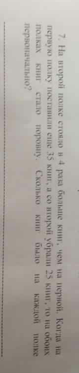 Когда на первую подку добавили 35 книг, то стало х + 35, тогда как со второй убрали 25 = 4х - 25.