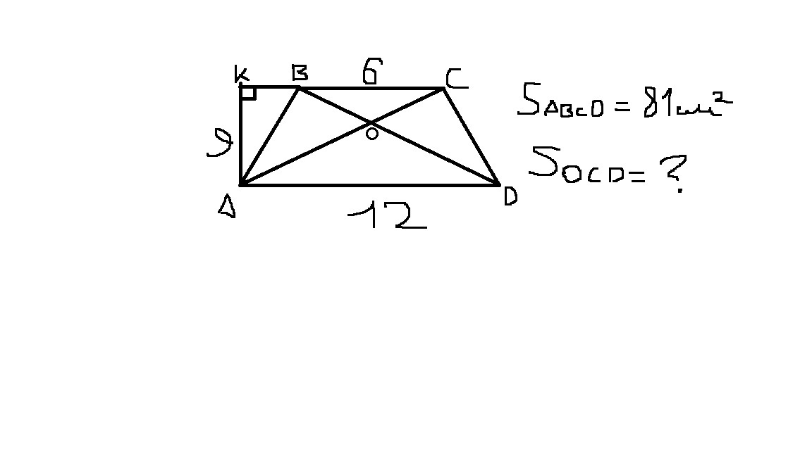 3. Треугольник BOC подобен треугольнику AOD с коэффициентом = 1/2, следовательно высота в BOC относится к высоте в AOD тоже с коэффициентом 1/2, а значит что высота в треугольнике BOC = 3