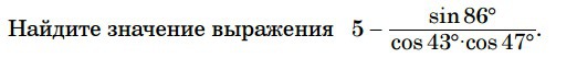 5 - ( cos(90-86) / (1/2(cos(47-43)+cos(43-47)))=