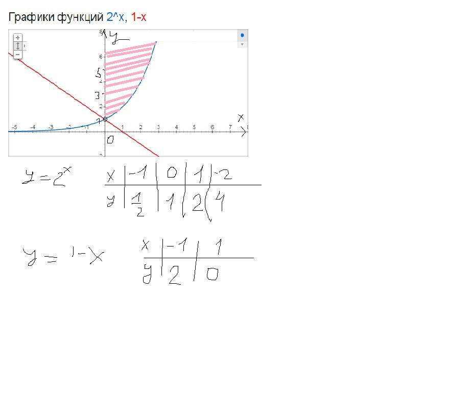 построим графики y=2^x и y=1-x по точкам