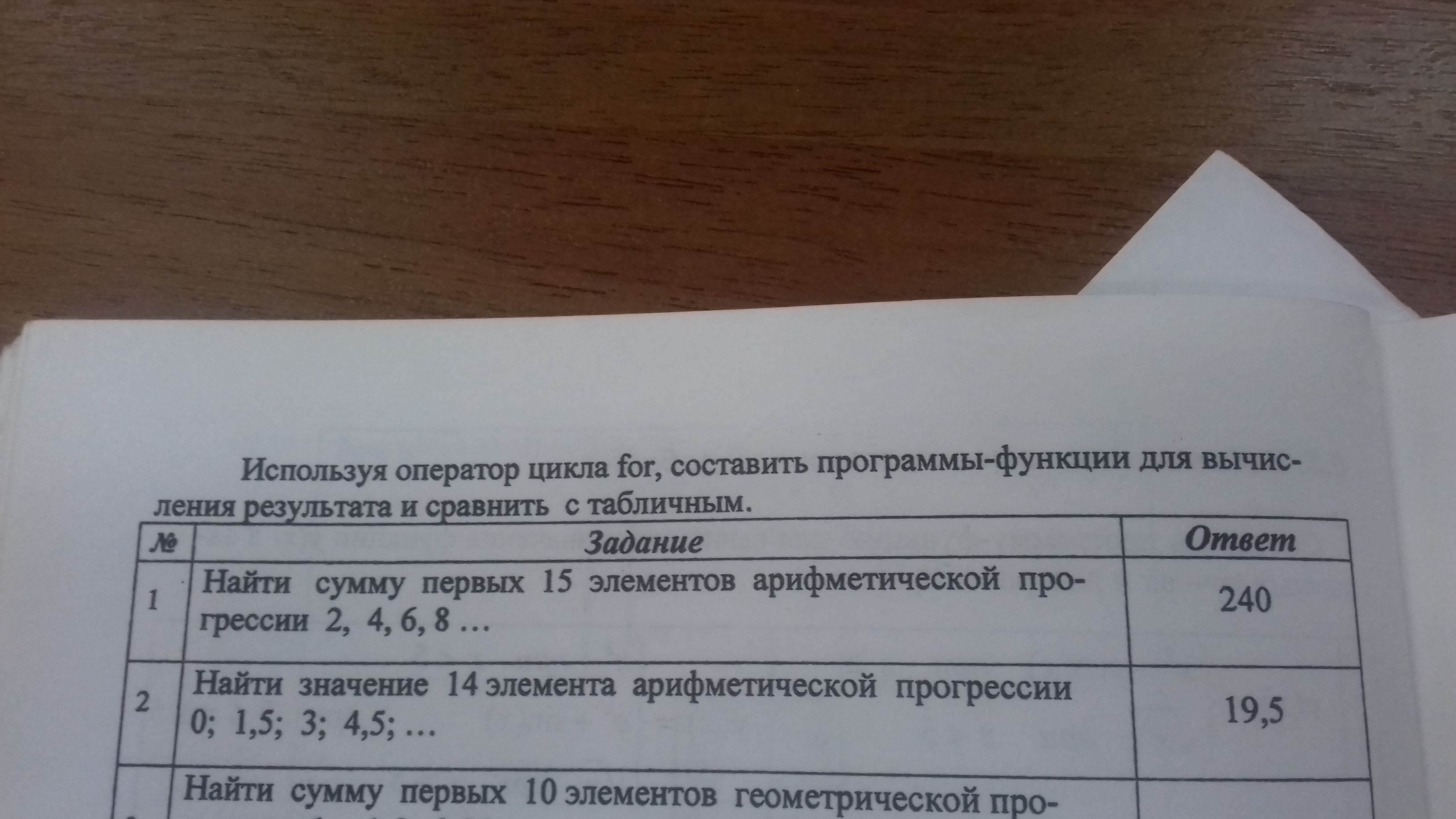 используя цикл For, составить программы- функции для вычисление результата и сравнить с табличным(#2)