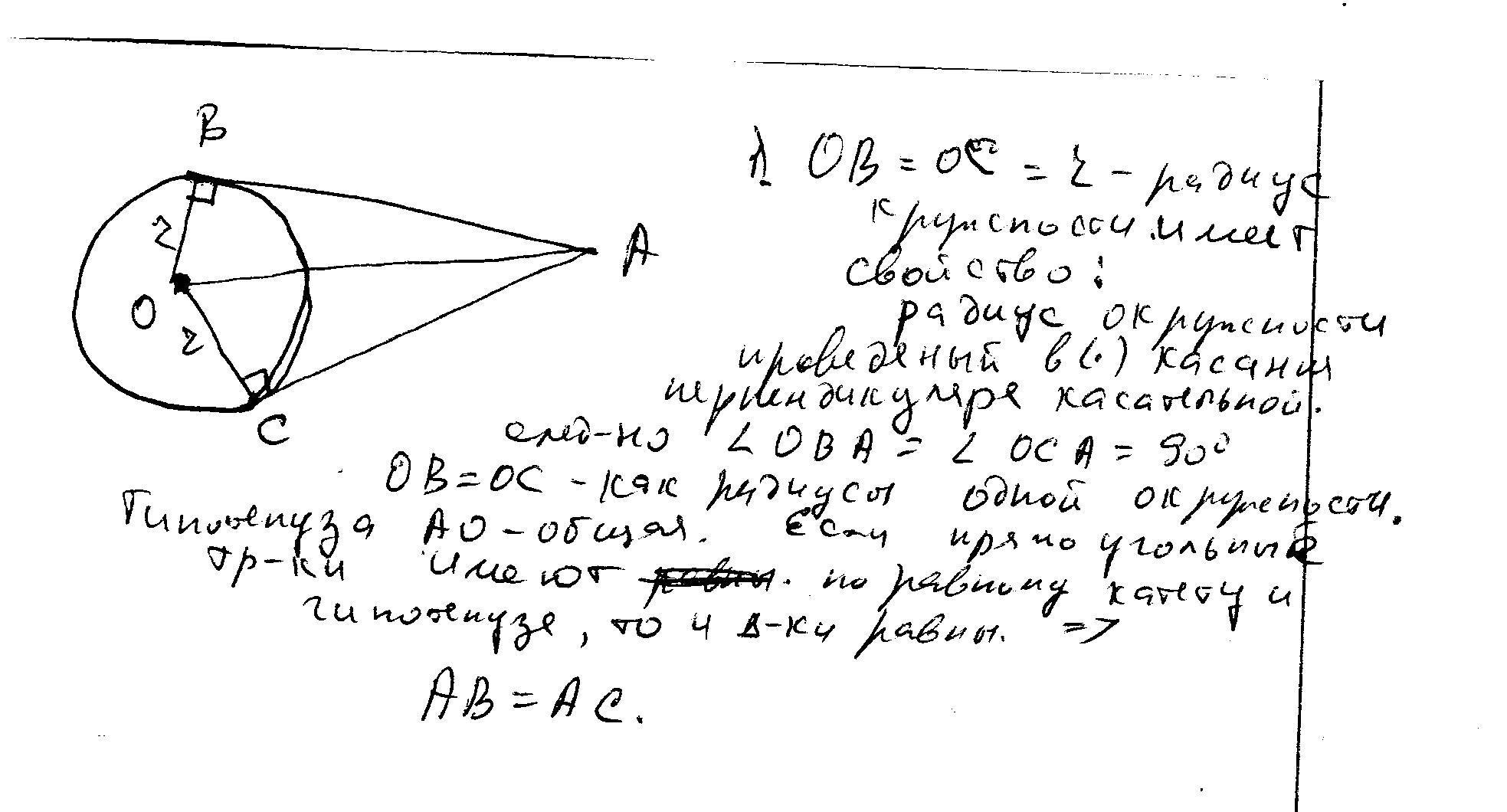 Из точки взятой вне окружности проведены к ней две касательной. Докозать что длины касательных равны между собой.
