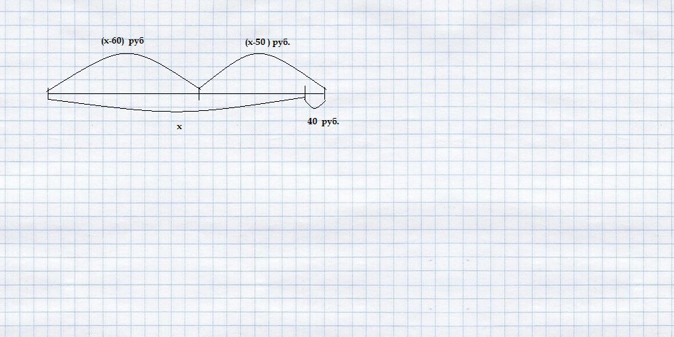 Тогда у Саши было (х-50) руб., у Миши (х-60) руб.