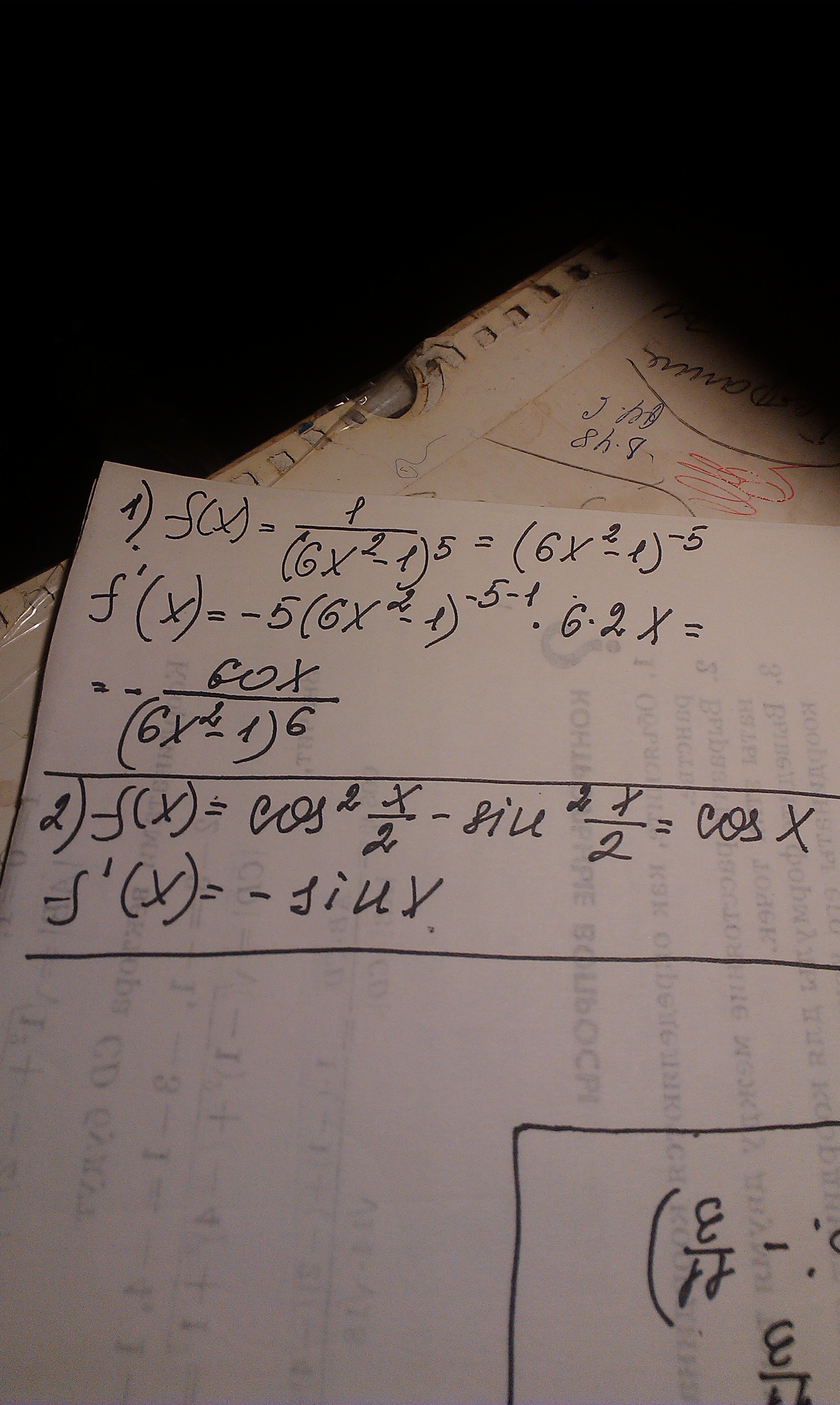 f¹(x)=-5(6x²-1)⁻⁵⁻¹ˣ12x=-60x(6x²-1)⁻⁶=-60x/(6x²-1)⁶