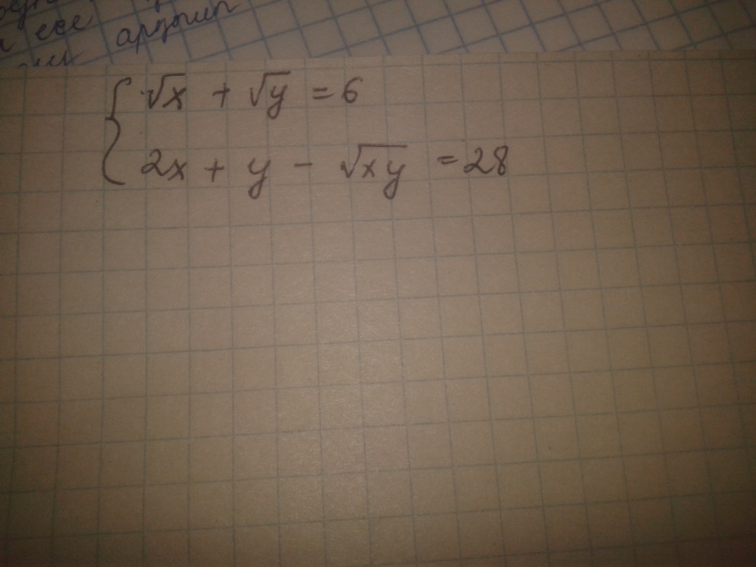 2х+у-√ху=28