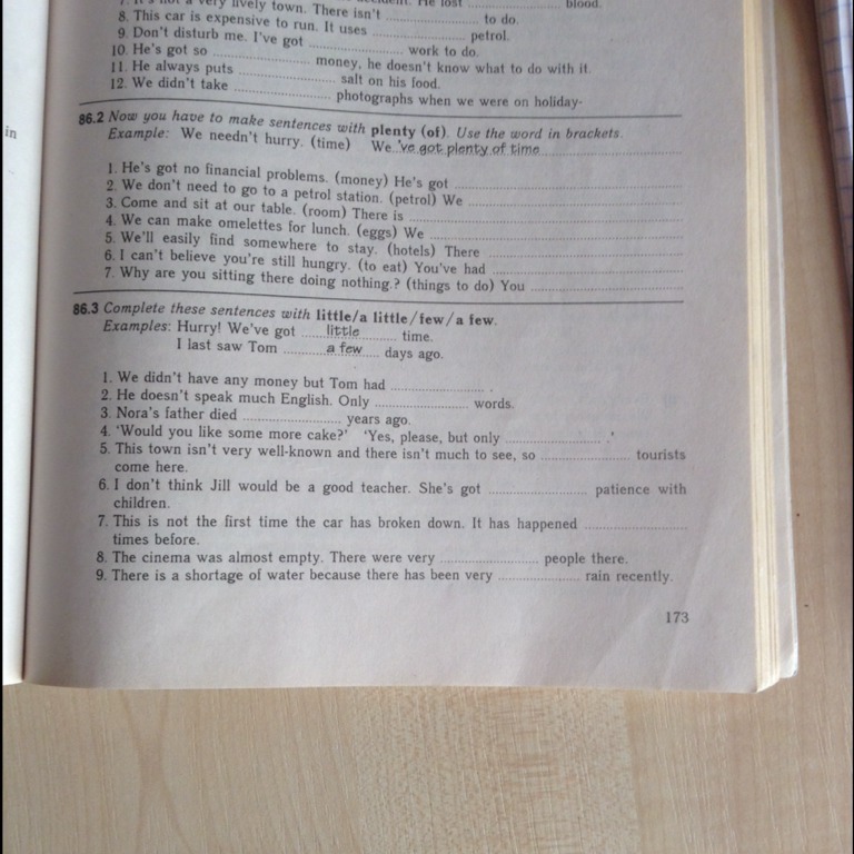 86/3 1. a little 2 a few 3 a few 4 a little 5 a few 6 little 7 a few 8 few 9 little