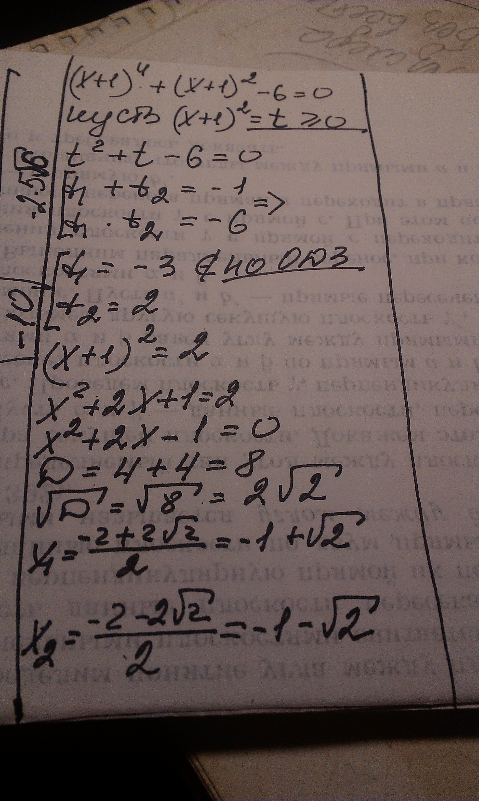 ( х + 1 )^4 + ( х + 1 )^2 - 6 = 0