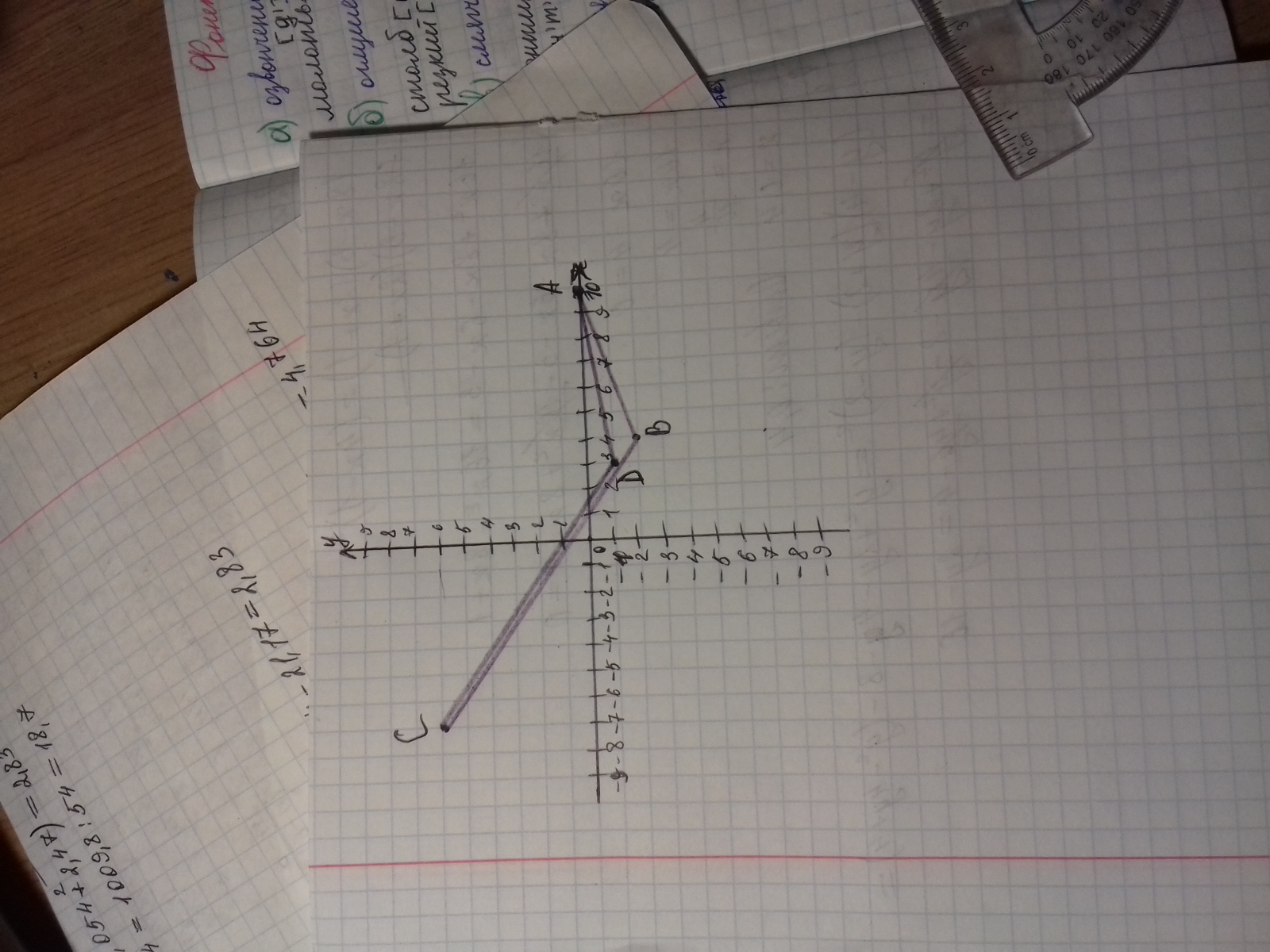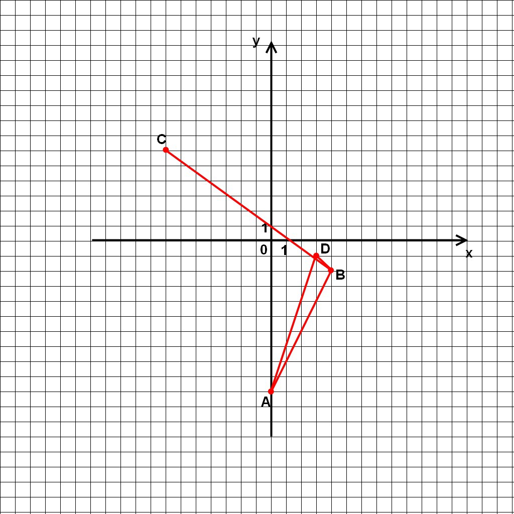 отметьте на координатной плоскости точки А (0,-10), В (4,-2), С (-7, 6), Д (3,-1). Соедините точки в следуюещем порядке: А, В, С, Д, А