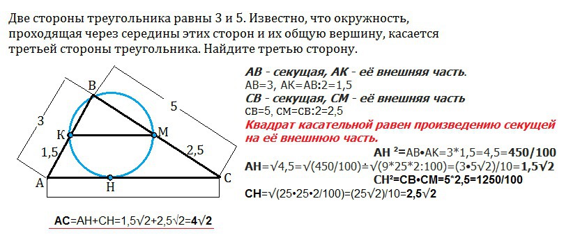 АН ²=АВ•AK=3*1,5=4,5=450/100