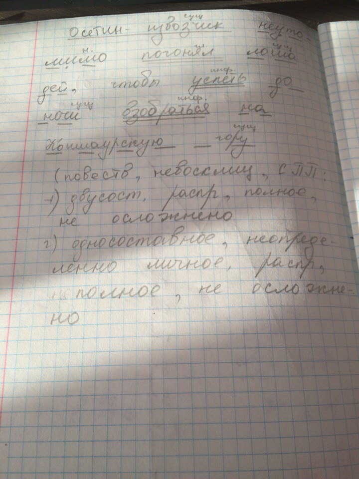 Надо произвести синтаксический разбор: Осетин-извозчик неутомимо погонял лошадей, чтоб успеть до ночи взобраться на Койшаурскую гору.