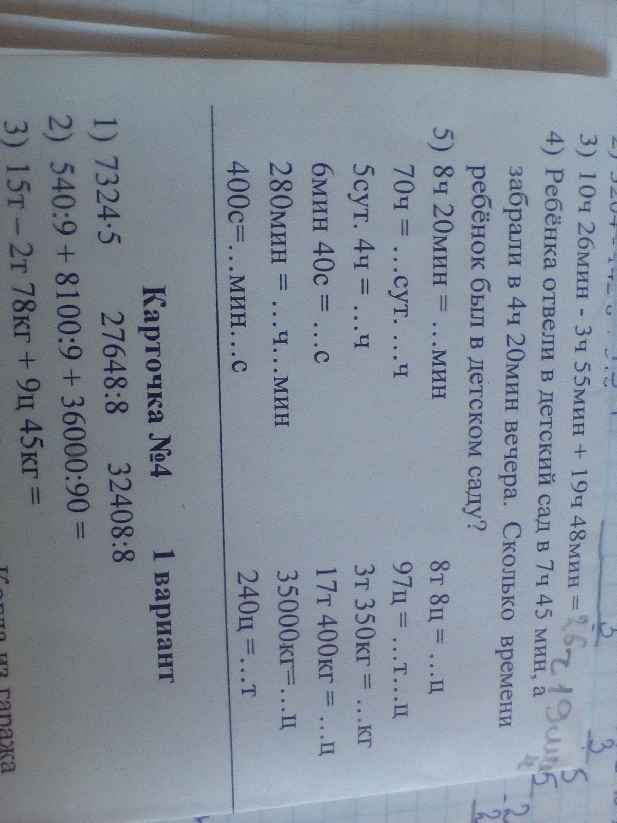 Задание 4: если перевести в минуты время то 7,45 = 465 мин, а 16,2= 980 мин, вычитаем получаем 515, переводим в часы и получаем 8 часов и 35 мин8 ч 20 минут = 500мин70 ч = 2 сут 22 ч