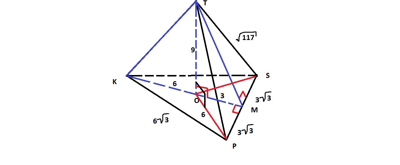 2) Sбок=3SΔpts=3(PS*TM/2)=3*6√3*3√10/2=27√30