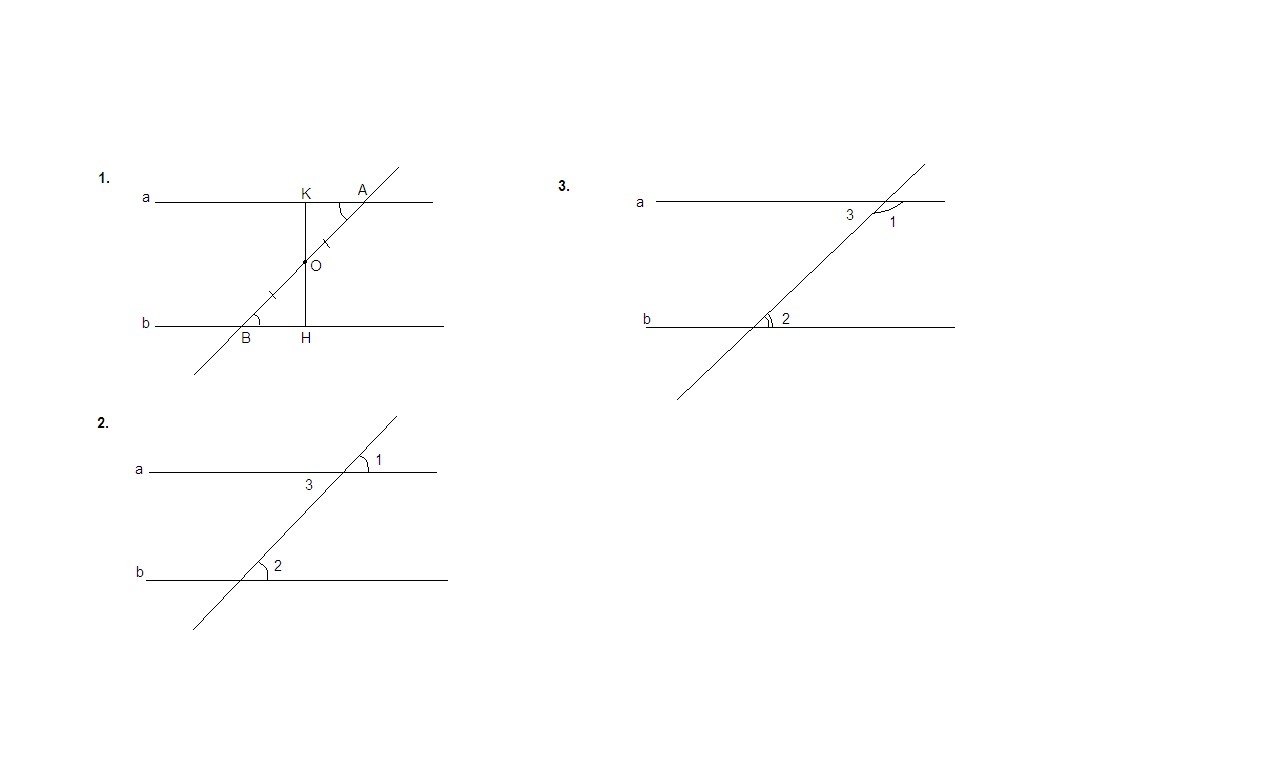 1. Если при пересечении двух прямых секущей накрест лежащие углы равны, то прямые параллельны.