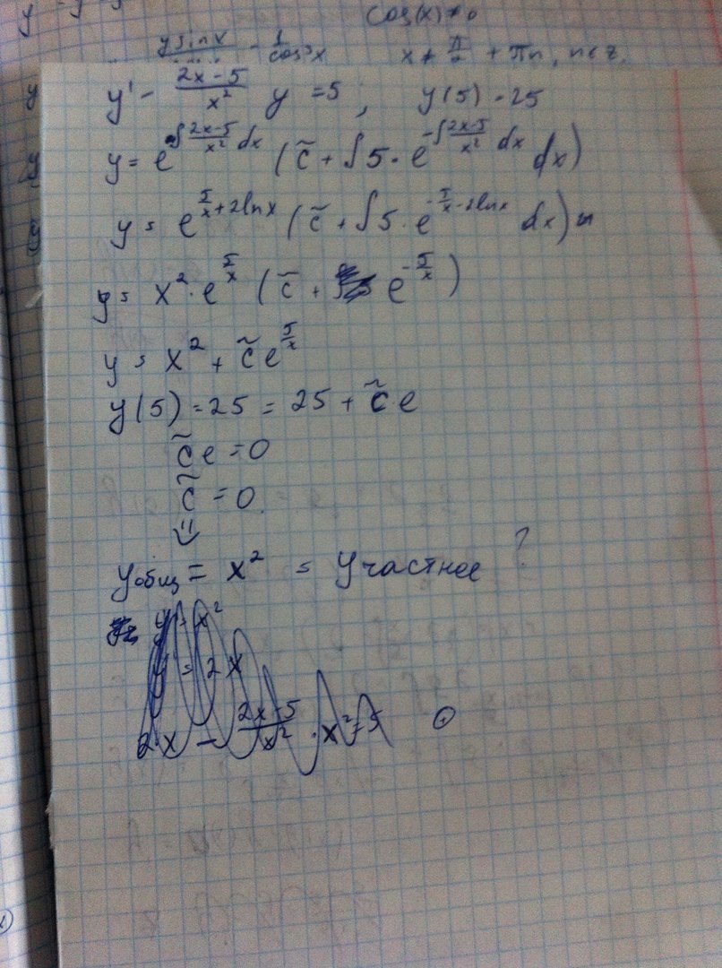 найти частное решение дифференциального уравнения по заданному начальном условию: y'-((2x-5)x^2)*у=5 у(5)=25