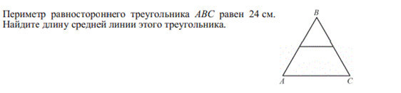 Раз треугольник равносторонний, то 24/3=8 см. А средняя линия равна 8/2=4 см