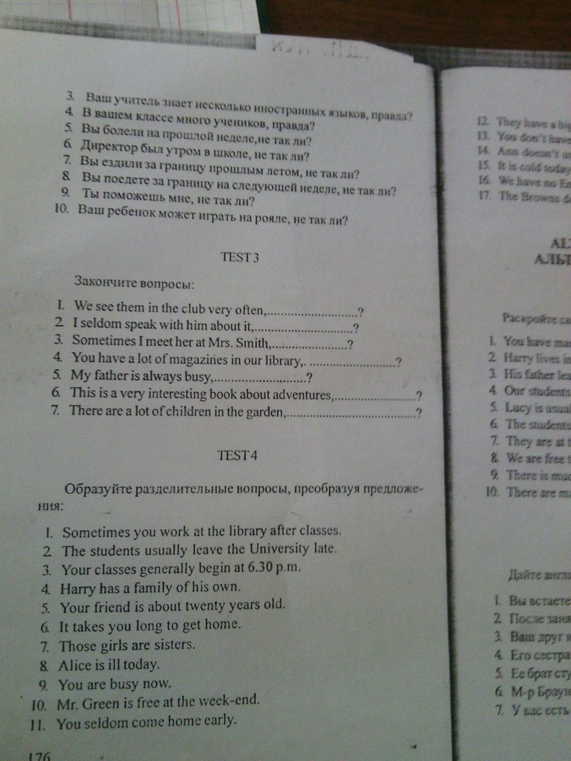 Помогите пожалуйста.Нужно выполнить задание на Расчлененные вопросыTEST 3,4 и Альтернативные вопросы TEST 1,2.