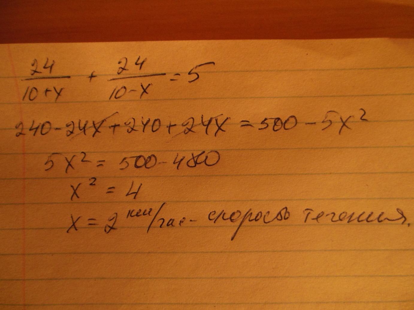 24 /( 10 + х ) + 24 / ( 10 - х ) = 5