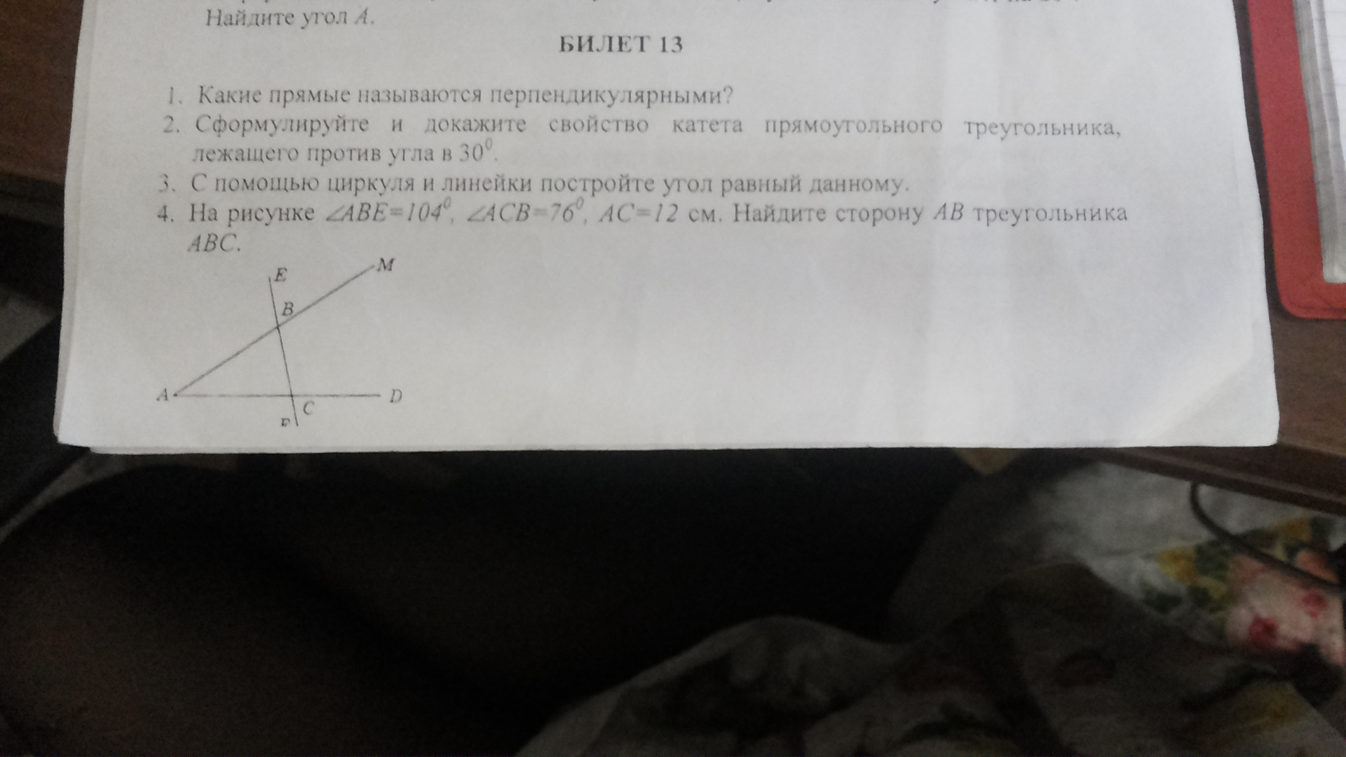 Угол ABC- 180-104=76град..
