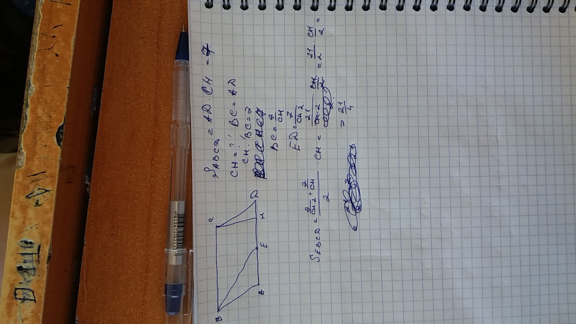 Точка E — середина стороны AB. Найдите площадь трапеции EBCD.