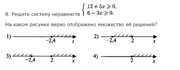 На 2-ом, просто реши неравенства, х оставь в левой части неравенства, а без х переноси вправо, потом делишь, получается х больше или равно -2.4 и х меньше или равно 2.