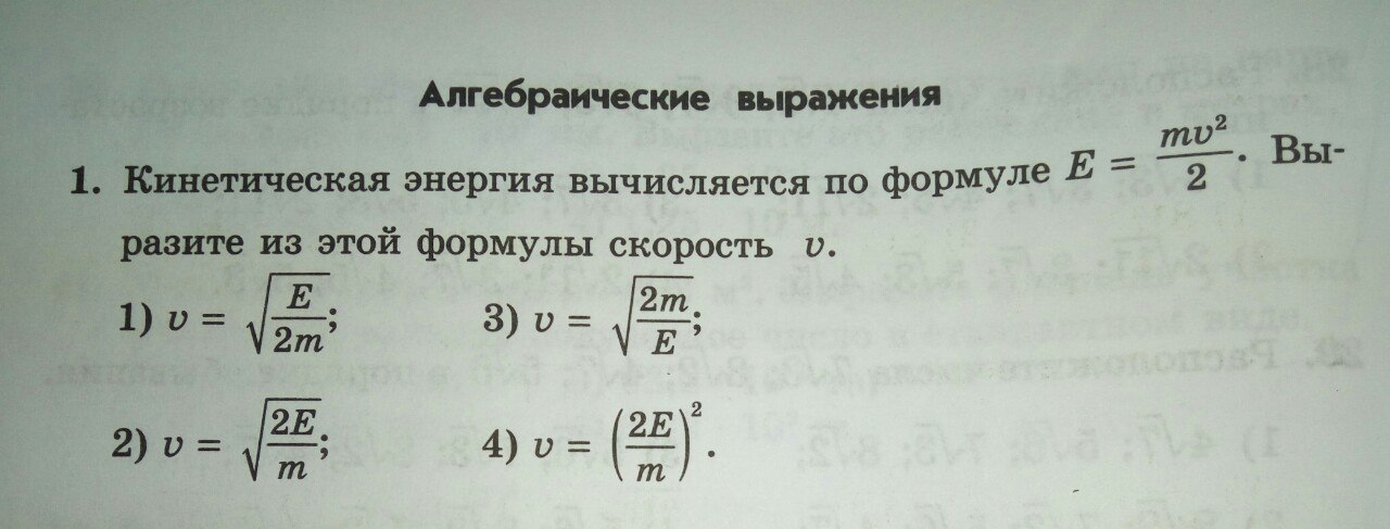 можно решить пропорцией тоесть дробь Е/1=m(v в квадрате)/2 из этого следует что v=корень из 2Е/m