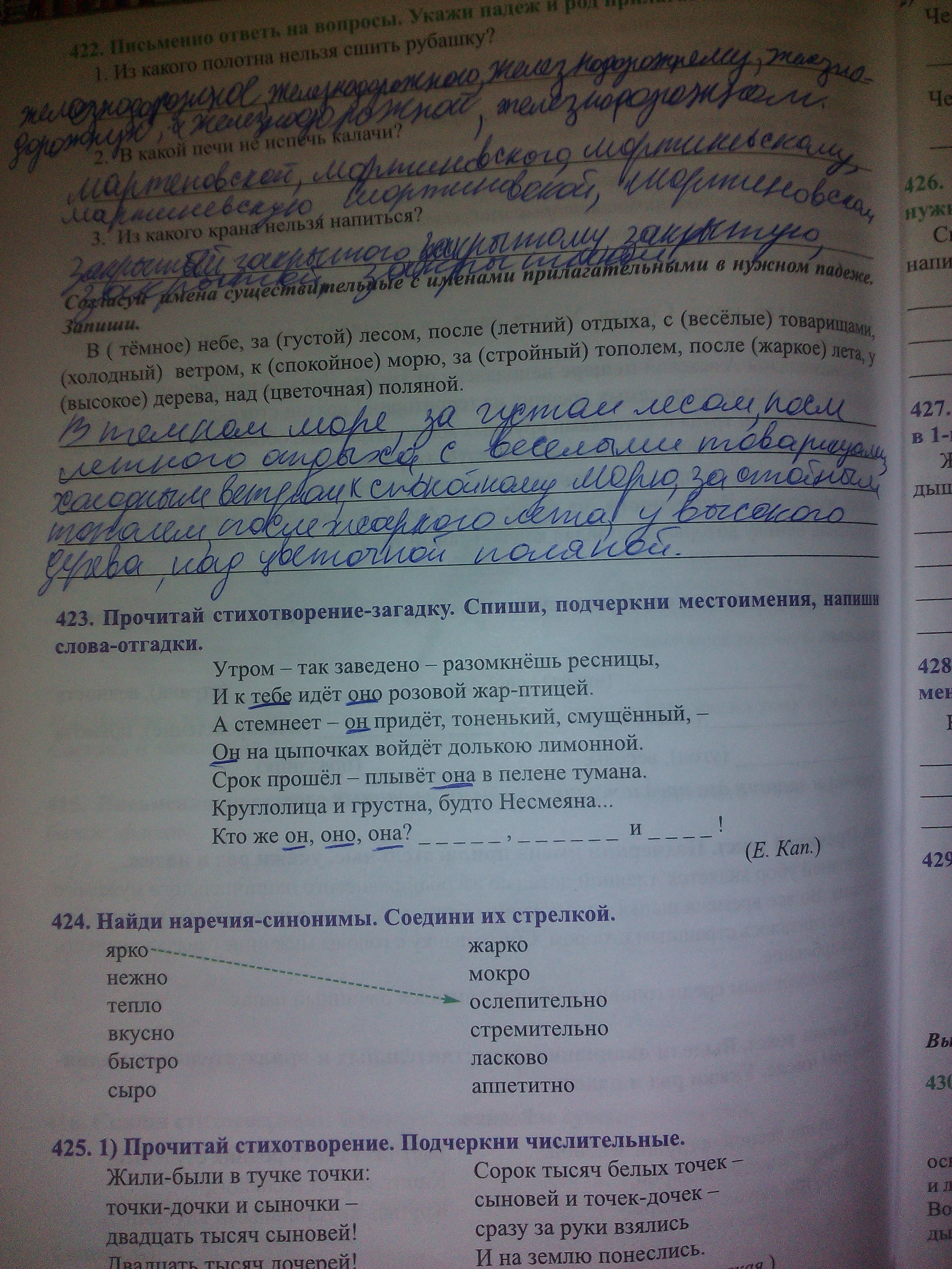 Местоимения подчеркнуты. Ответы: солнце, месяц и луна.