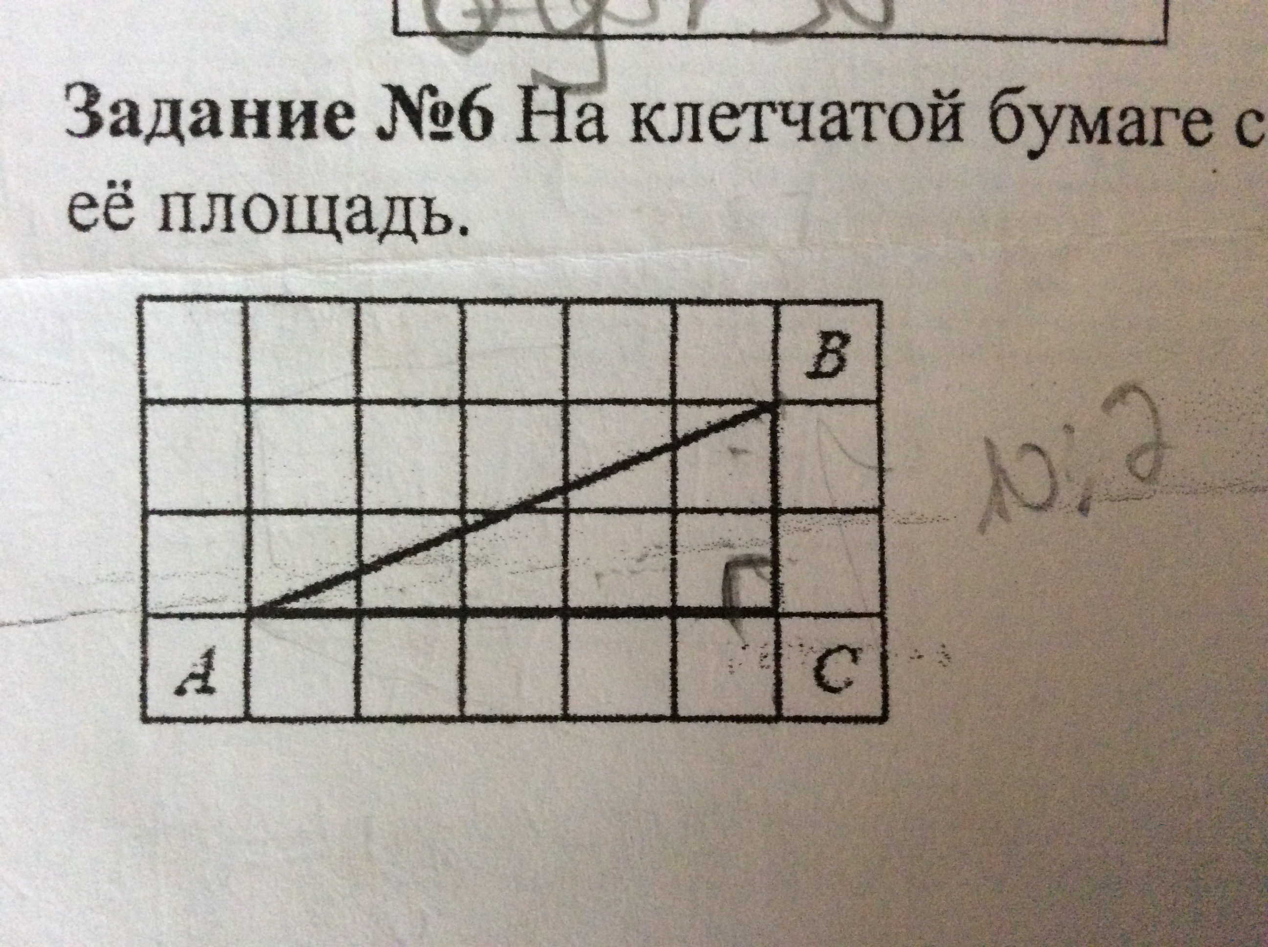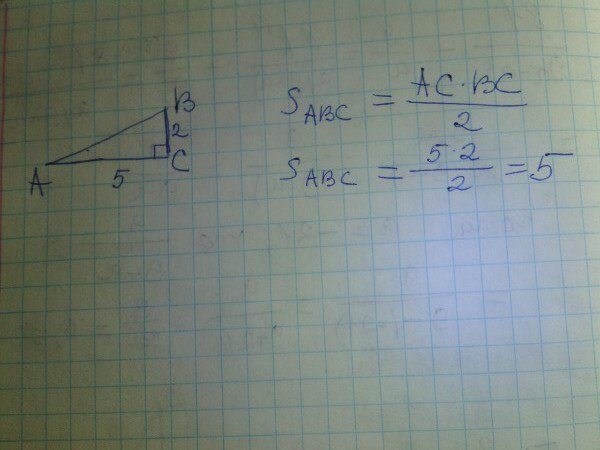 Смотрим. Первый катет равен 5 клеток. Второй - 2. Подставляем: