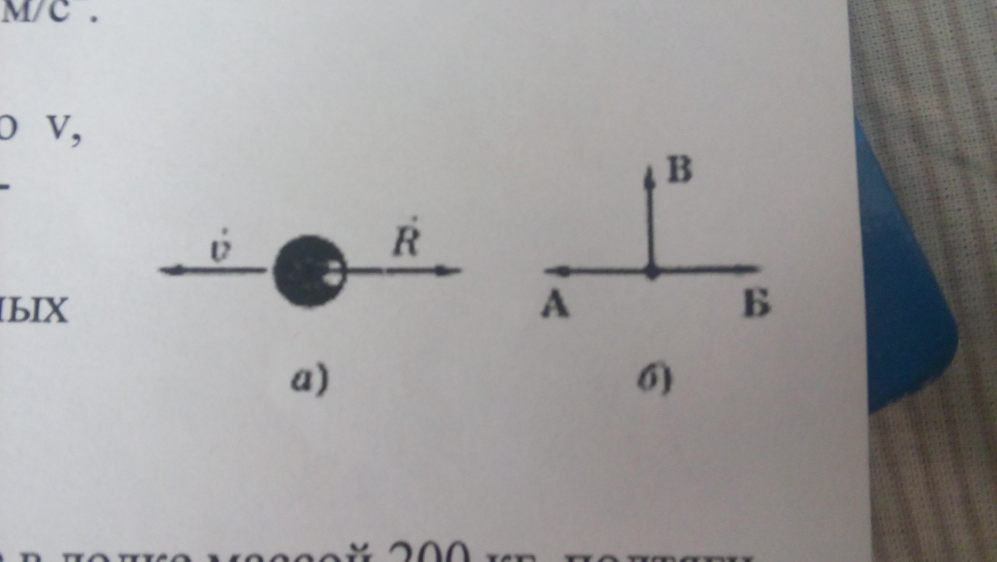 На шар, движущийся со скоростью v, действует несколько сил. Их равнодействующая R изображена на рисунке 18, а. Укажите, какой из векторов, изображенных на рисунке 18, б, указывает направление вектора ускорения.