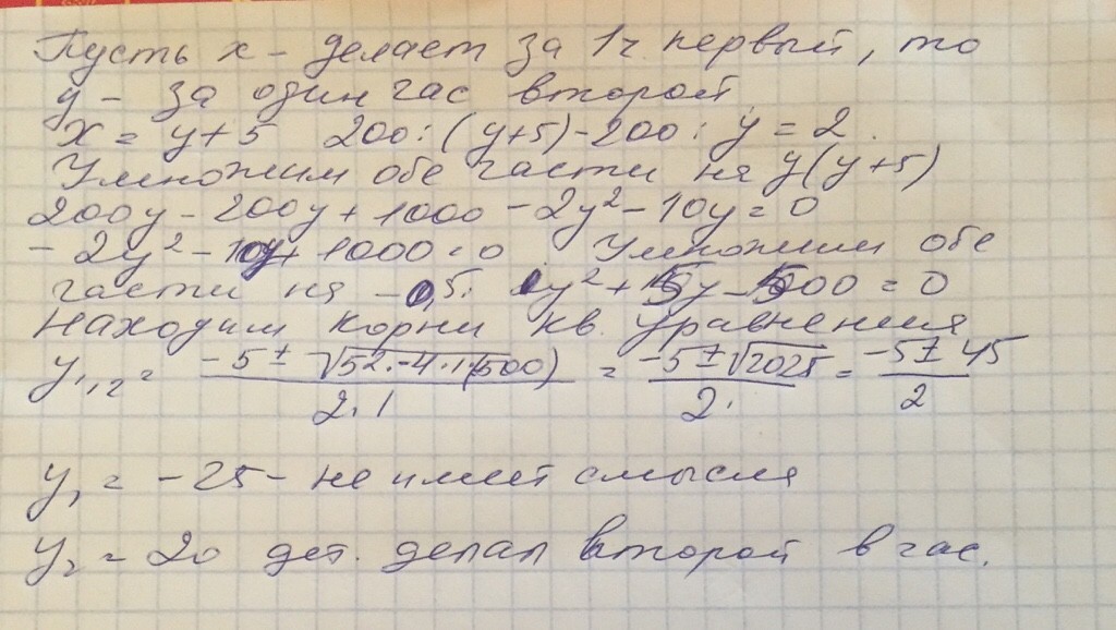Первый рабочий за час делает на 5 деталей больше, чем второй, и выполняет заказ, состоящий из 200 деталей, на 2 часа быстрее, чем второй рабочий, выполняющий такой же заказ. Сколько деталей в час делает второй рабочий?