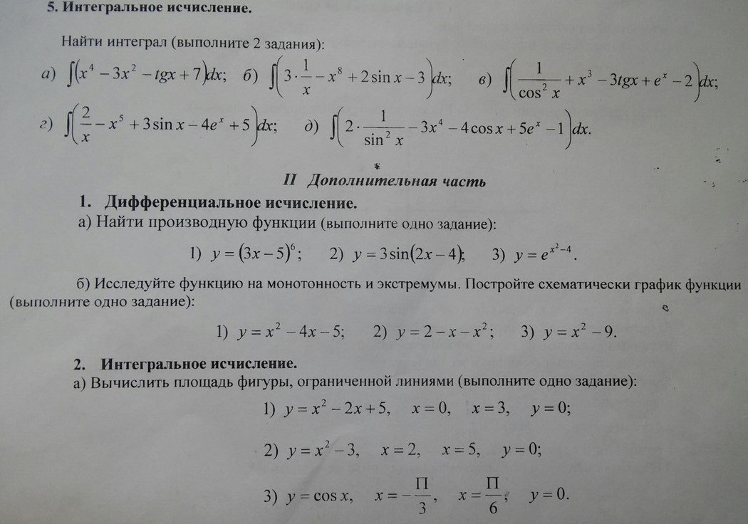Интегральное исчисление и дифференциальное исчисление. Помогите пожалуйста решить. Кто, что сможет. Заранее спасибо!