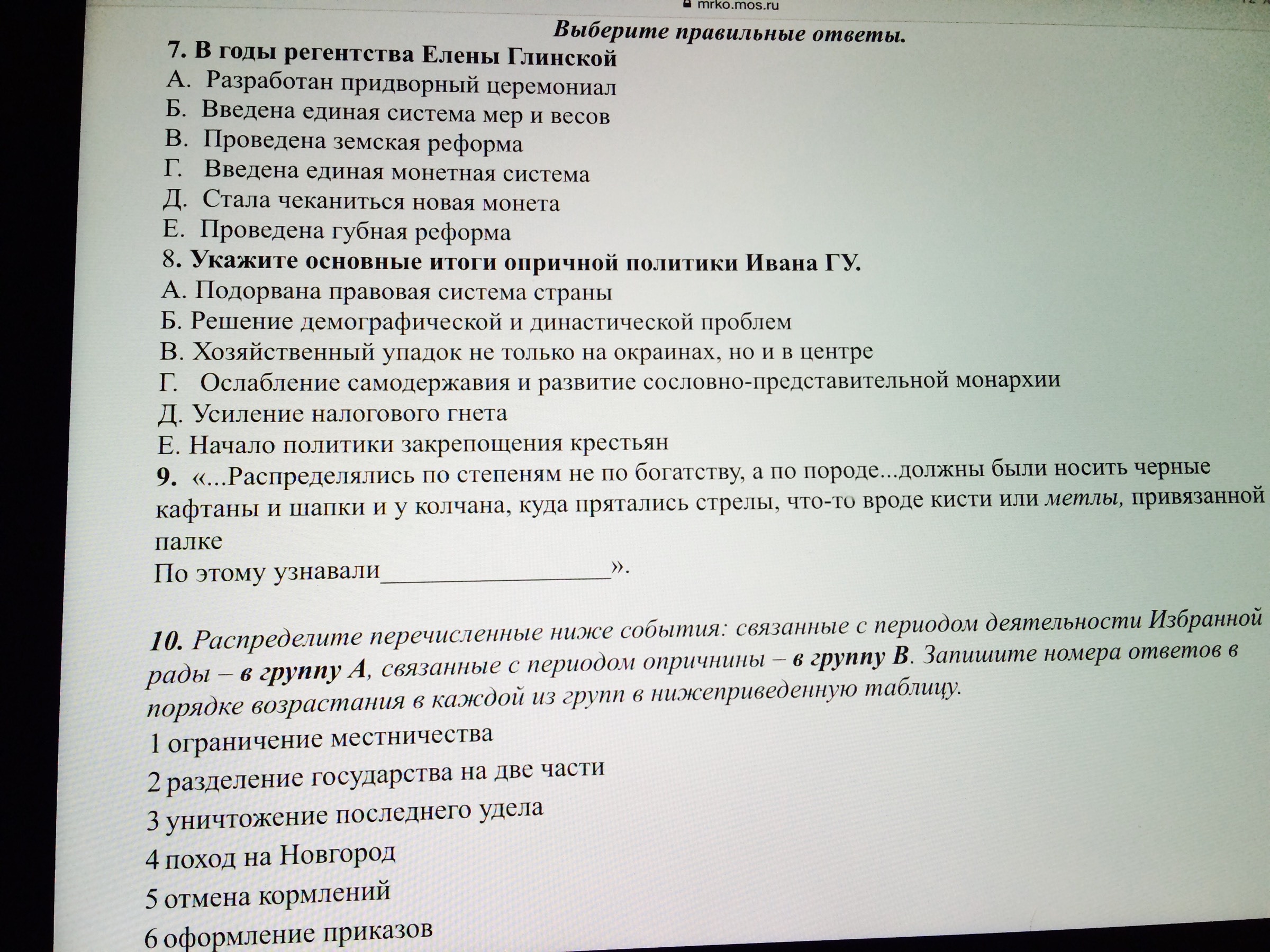 Только 1-5 задание Помогите пожалуйста! 6 класс, история, Иван |V (Грозный) с одним правильным ответом. Заранее благодарю!