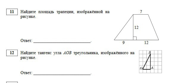 12. Тангенс угла равен отношению противолежащего катета(АВ) к прилежащему(ОА), которые можно просто посчитать по клеточкам: