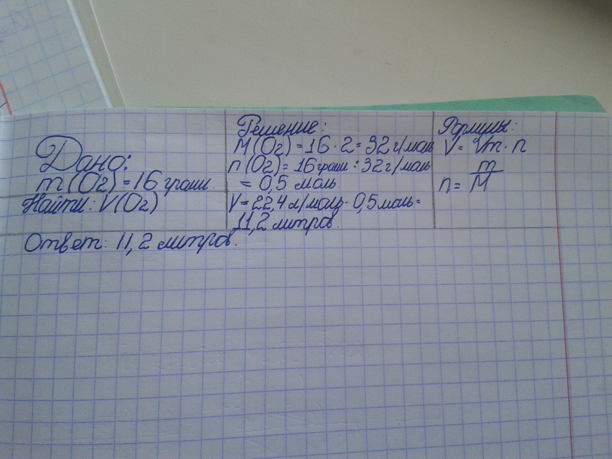 16 г/32 г/ моль=0,5 моль - это количество вещества 02.