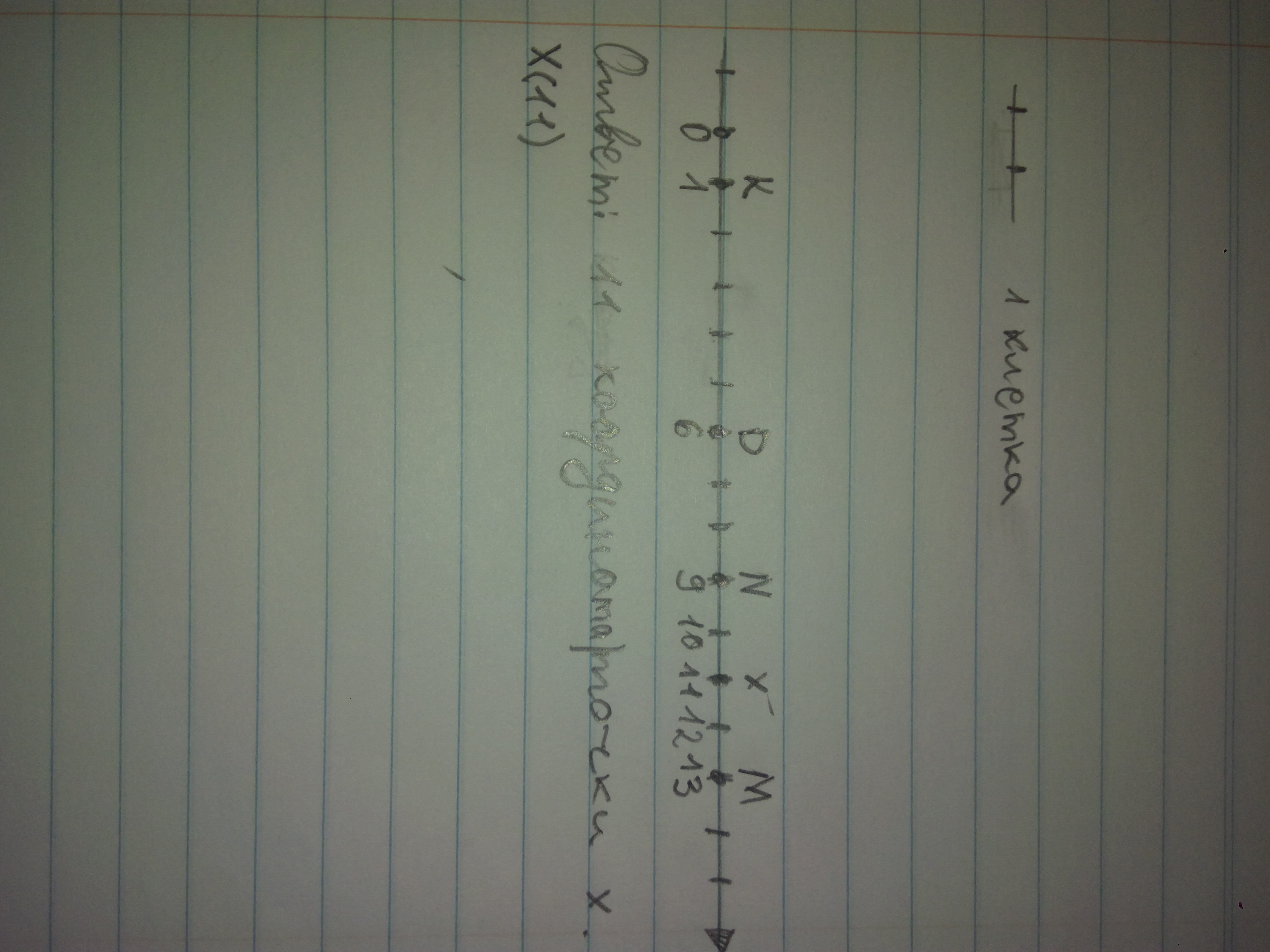 На координатом луче, единичный отрезок которого равен длине одной клетки тетради,отметье точки M(13),N(9),D(6), и K(1). На этом же луче отметье точку Х, если ее координата - натуральное число, которое меньше 12, но больше 10.