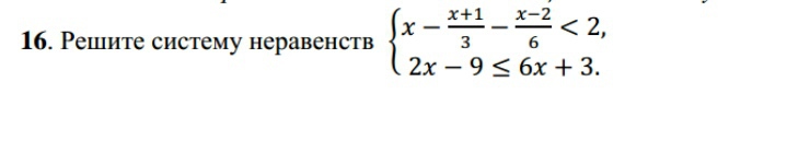 Первое неравенство умножь на 6, сократив тем самым знаменатели.
