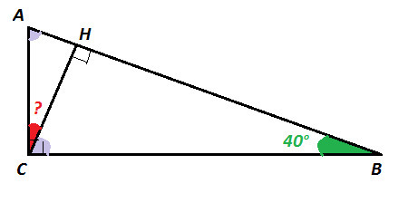 CH-высота,проведенная к гипотенузе прямоугольного треугольника ABC.Найдите угол ACH если угол B=40 градусов. ПОМОГИТЕ!!!!!!