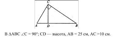 проекции катетов на гипотенузу равны 4 и 25 сантиметров Найдите площадь данного прямоугольного треугольника