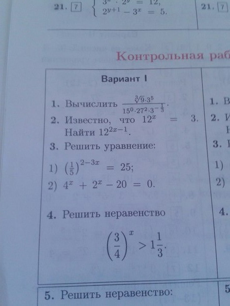 0<3/4<1, поэтому показательная функция убывает и меньшему значению соответствует большее значение аргумента