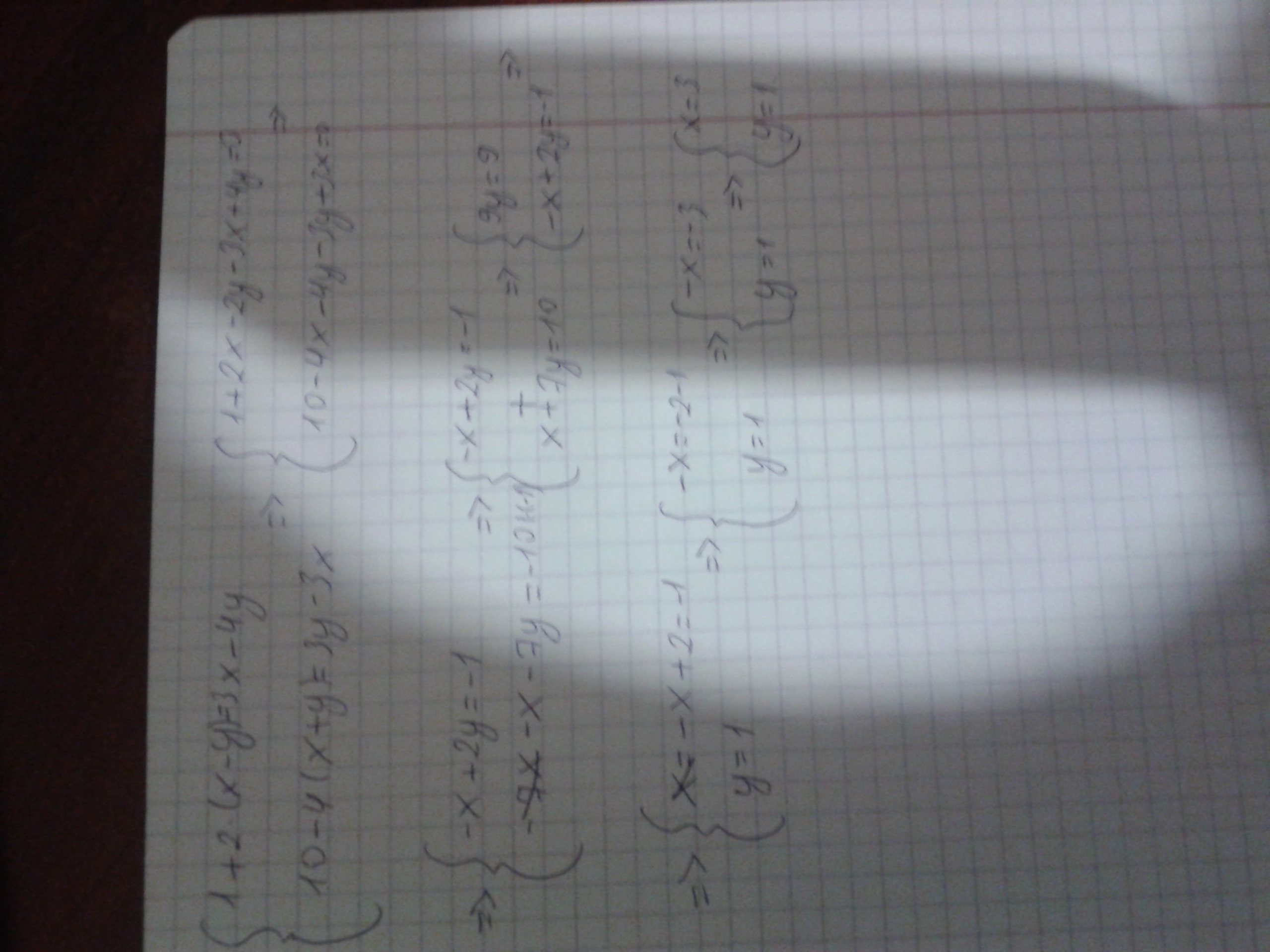 подставляешь в любое уравнение у = 1, получаешь х = 3