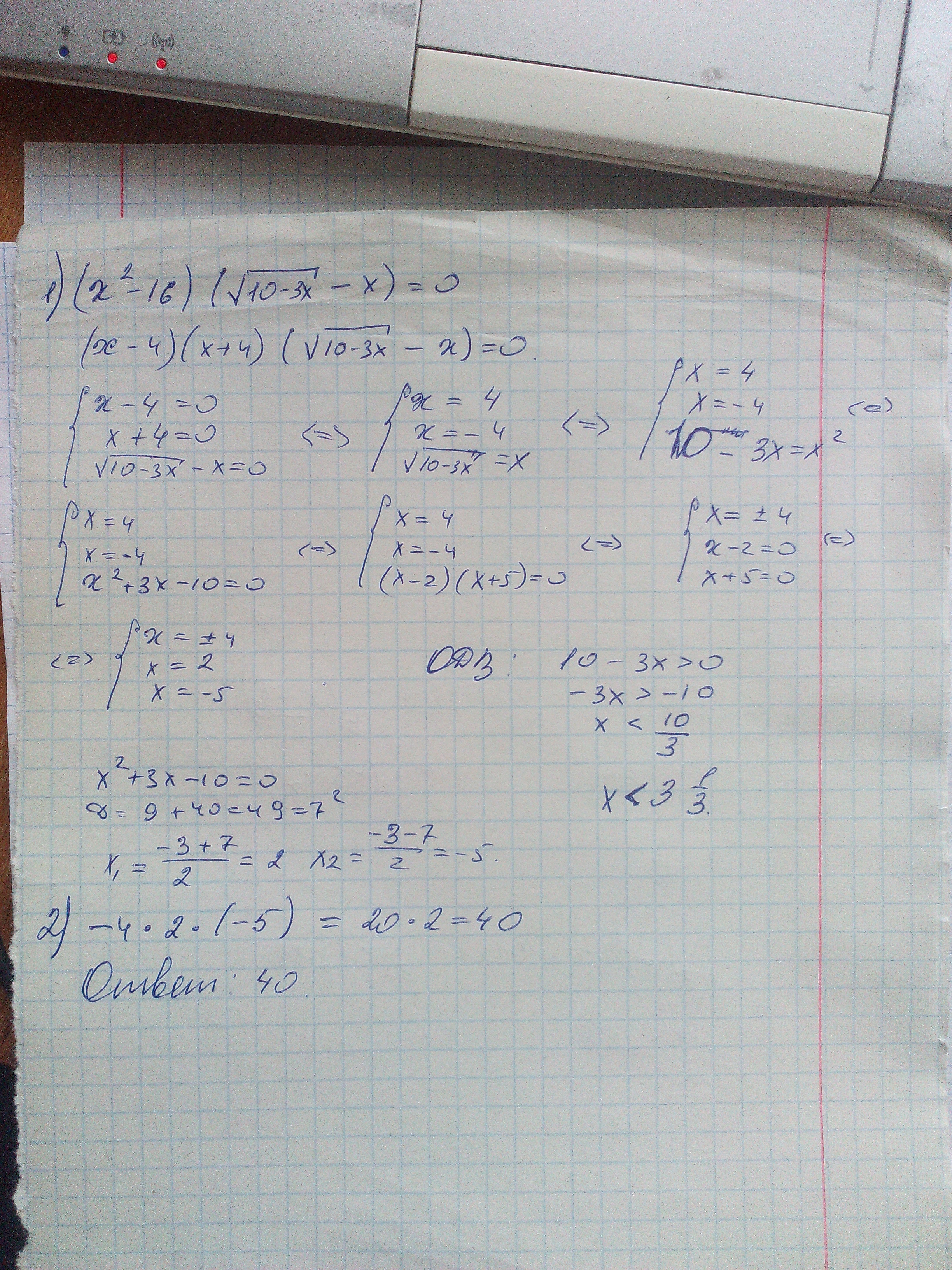 V - знак корня. V(10-3x)-x=0; V(10-3x)=x. Обе части должны быть неотрицательны. Значит, ОДЗ: 10-3x>=0 и x>=0. Поэтому, x e [0; 10/3].