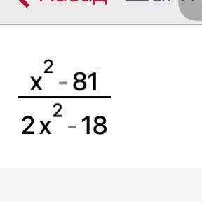 frac{x^2-81}{2x-18} = frac{(x-9)(x+9)}{2(x-9)} = frac{x+9}{2}