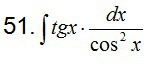 int tgxcdot  frac{dx}{cos^2x} =[, t=tgx,; dt= frac{dx}{cos^2x} , ]=int tcdot dt=\\=frac{t^2}{2}+C= frac{tg^2x}{2} +C