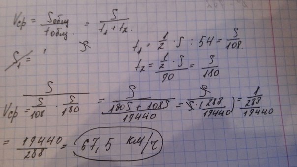 первую половину трассы автомобиль проехал со скоростью 54 км/ч, а вторую- сос коростью 90 км/ч. найдите среднюю скорость автомобиля на