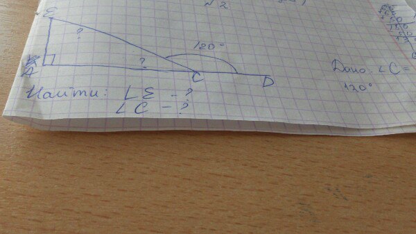 Угол ЕСА = 180-120 = 60(смежные углы). Угол Е =90-60=30