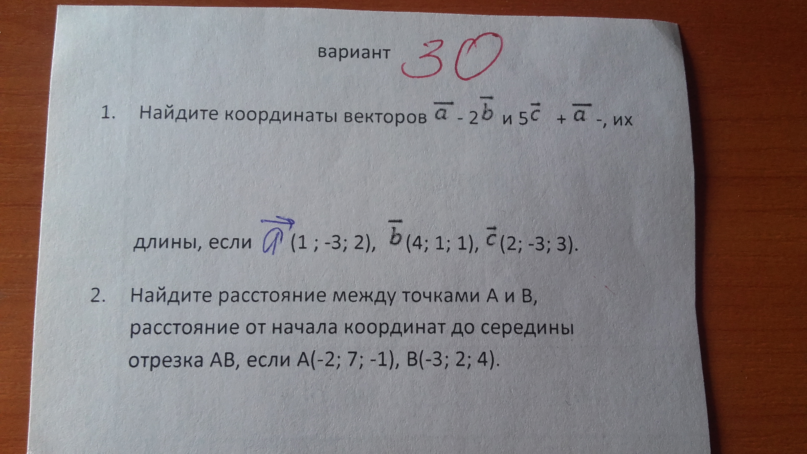 Вектор от начала координат до середины отрезка AB будет равняться: