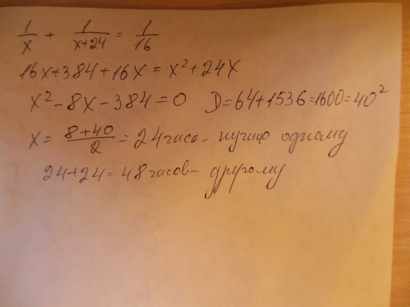 1/х+1/(х+24)=1/16