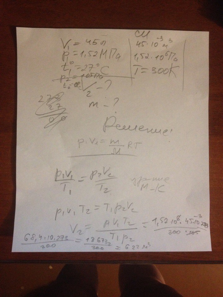 в баллоне вместимостью 45л хранится кислород под давлением 1,52МПа при температуре 27°С.Какой обьем занял бы этот газ при нормальных условиях? Какова его масса.