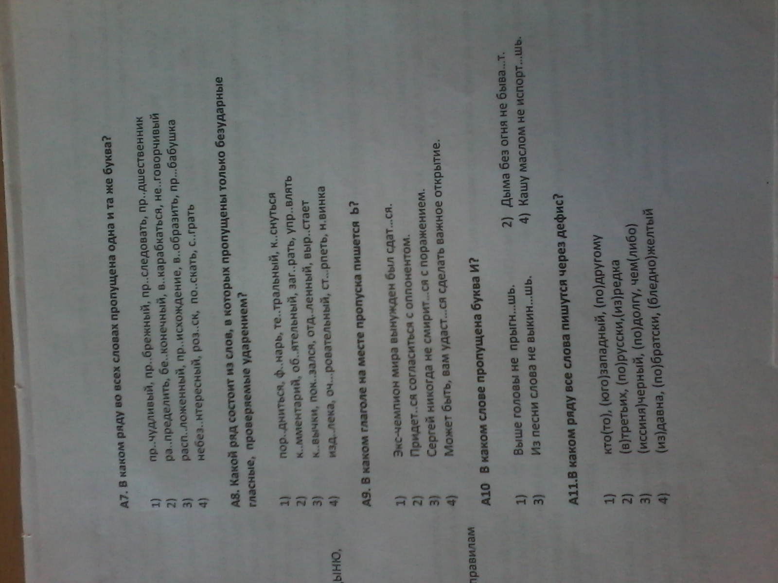 А7 2) А8 4) А9 1) А10 4) А11 1)