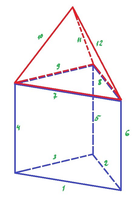 Значит у нового многогранника будет на 3 ребра меньше, чем у призмы и пирамиды вместе взятых.