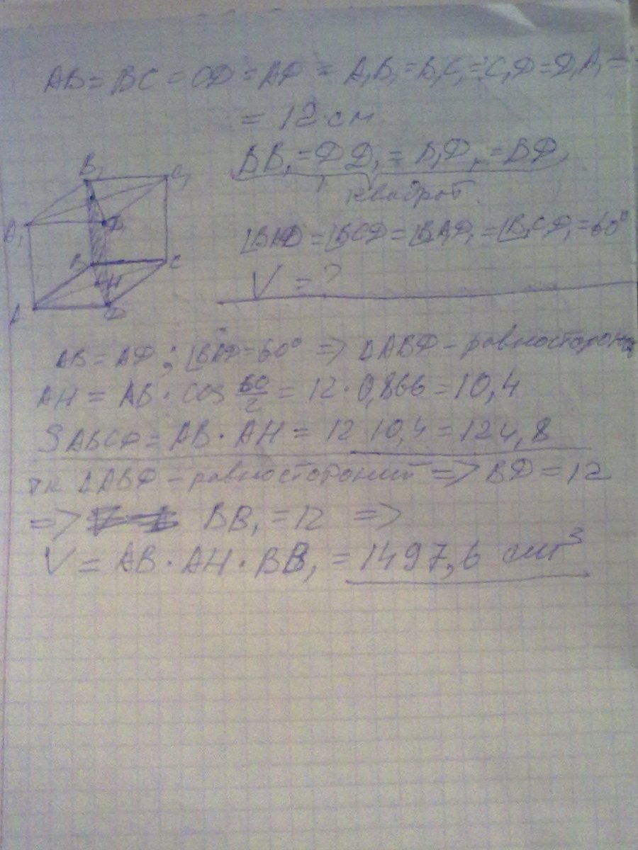 Основанием прямой призмы является ромб со стороной 4 см и углом 120